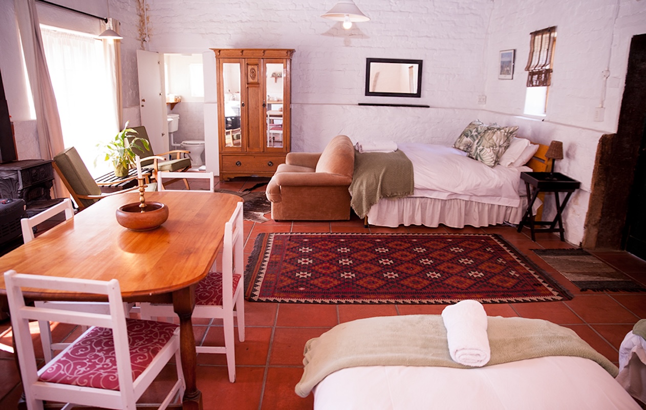 Relax, soak up the sun, and enjoy the peace and quiet of the Karoo. Go birdwatching or hiking or just curl up in front of a log fire on a cold winter evening. Doornberg is a working sheep and cattle farm with many fields irrigated by mountain springs, and Peet van Heerden is the sixth-generation owner of this magnificent family farm. The farmhouse is hidden among 200-year-old oak trees and is the ideal accommodation for travellers or families alike.